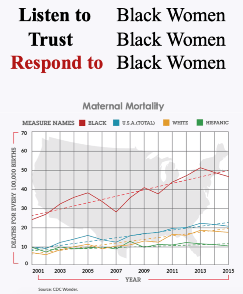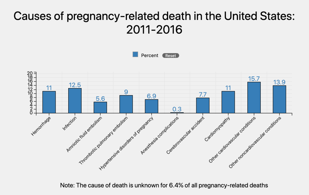 I have brought up the statistics multiple times, but I must draw your attention to them one more time. The U.S. has the highest maternal death rate among developed nations in the world with approximately 700 women dying every year due to pregnancy related complications. Up to 60% of these maternal deaths are PREVENTABLE. For each of these women who die, up to 70 suffer from avoidable complications that result in near death. The annual cost of these near deaths to the mothers, their families, taxpayers and the healthcare system runs into the billions of dollars (Anderson & Roberts, 2019)